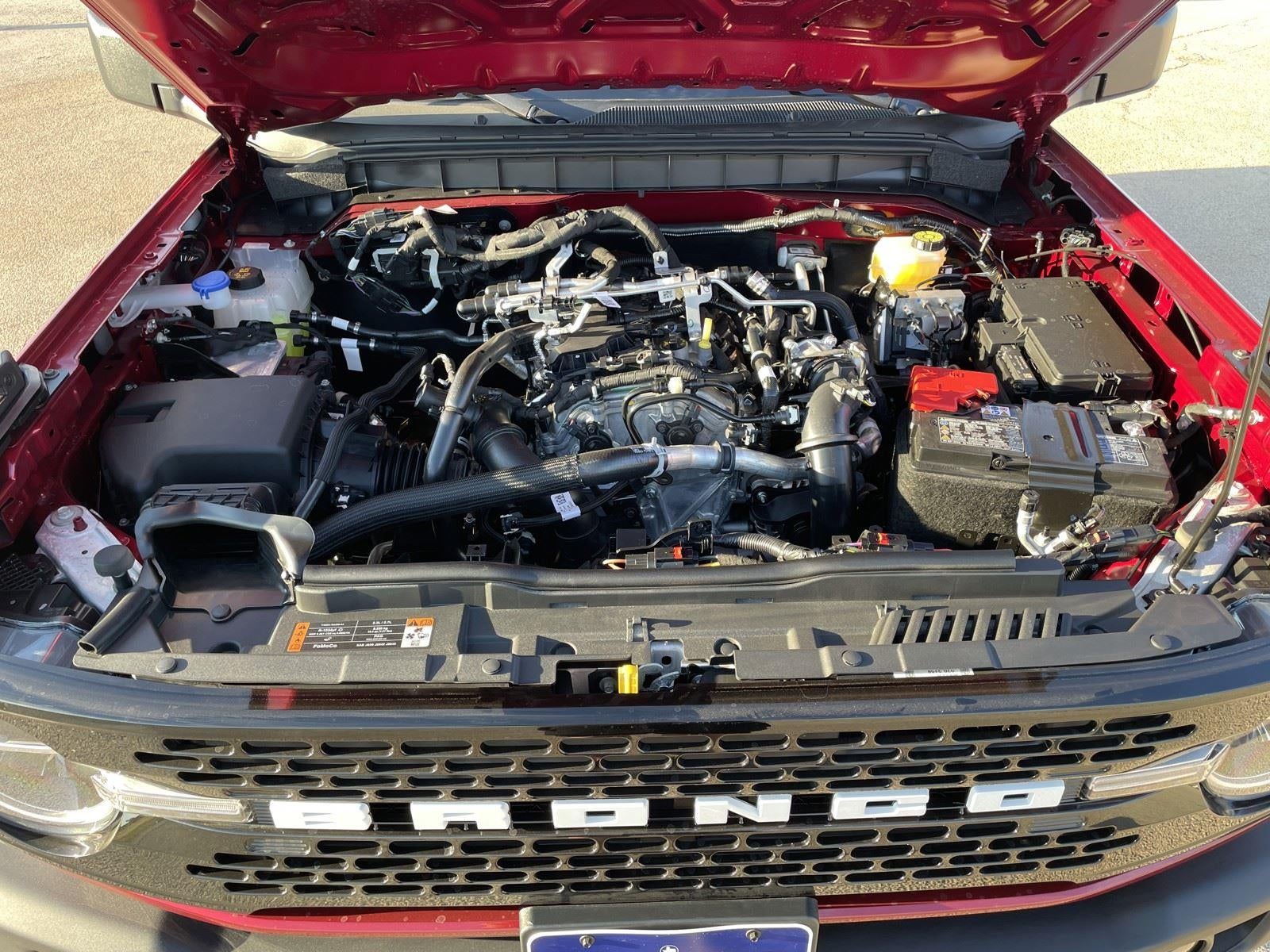 **BLACK DIAMOND PACKAGE** ($4,495 ADD TO MSRP), **SASQUATCH PACKAGE** ($4,180 ADD TO MSRP), **HARD TOP, BLACK-PAINTED** ($2,495 ADD TO MSRP), **10-SPEED AUTO TRANSMISSION** ($1,795 ADD TO MSRP), **EQUIPMENT GROUP 222A** ($1,540 ADD TO MSRP), **BLACK APPEARANCE PACKAGE** ($1,450 ADD TO MSRP), RUBY RED MET TNTD CLEARCOAT, 2.3L, 10-SPEED AUTO TRANSMISSION, 4WD, KEYLESS ENTRY, PUSH BUTTON START, REMOTE START, SYNC®4, SIRIUSXM®, FORDPASS® CONNECT, REAR VIEW CAMERA, POWER HEATED MIRRORS, TOW HOOKS-FRT (2)/REAR (1), HILL START ASSIST, PRE-COLLISION ASSIST W/AEB, LATCH CHILD SAFETY SYSTEM, PERSONAL SAFETY SYSTEM™, PERIMETER ALARM