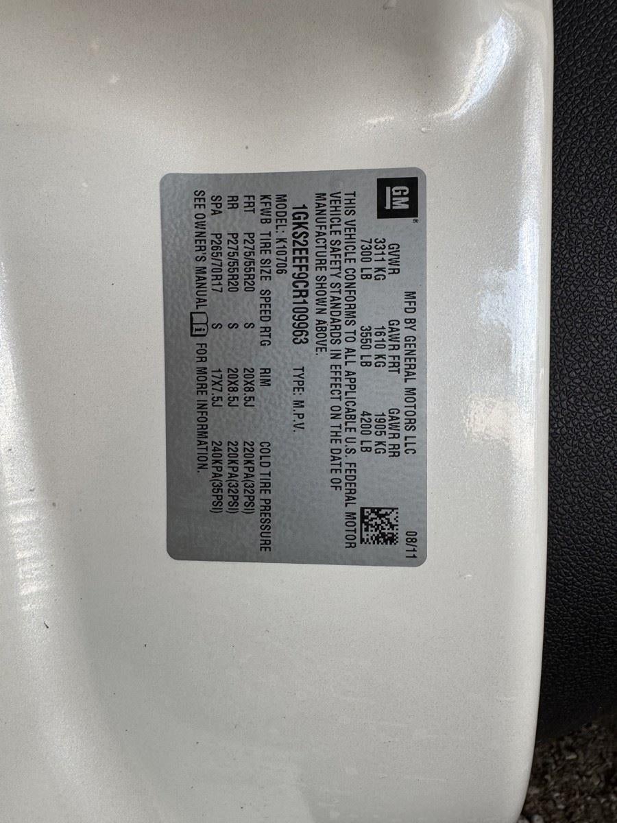 **SUN, ENTERTAINMENT AND DESTINATIONS PACKAGE** ($1,985 ADD TO MSRP), WHITE DIAMOND TRICOAT, INTEGRATED BRAKE CONTROLLER, THEFT-DETERRENT WHEEL, 1ST AND 2ND ROW ALL WEATHER FLOOR MATS, 6.2L V8, ELECTRONIC 6-SPEED AUTOMATIC TRANSMISSION WITH OVERDRIVE, AWD, 20'' WHEELS, KEYLESS ENTRY, PUSH BUTTON START, REMOTE START, HEATED STEERING WHEEL, POWER SUNROOF, HEATED & COOLED FRONT SEATS, POWER DRIVER SEAT WITH LUMBAR, POWER PASSENGER SEAT WITH LUMBAR, POWER ADJUSTABLE PEDALS, NAVTRAFFIC, SIRIUSXM SATELLITE RADIO, BOSE AUDIO SYSTEM, REAR VIEW CAMERA, POWER LIFTGATE, LEATHER SEATS, BUCKET SEATS, INTEGRATED TRAILER BRAKE CONTROLLER, CARGO AREA TIE DOWNS, TRAILER SWAY CONTROL, CLASS IV TOW RATING, TRAILER HITCH, TRAILER WIRING HARNESS, BLIND SPOT WARNING, STABILITRAK W/PROACTIVE ROLL AVOIDANCE, HILL START ASSIST