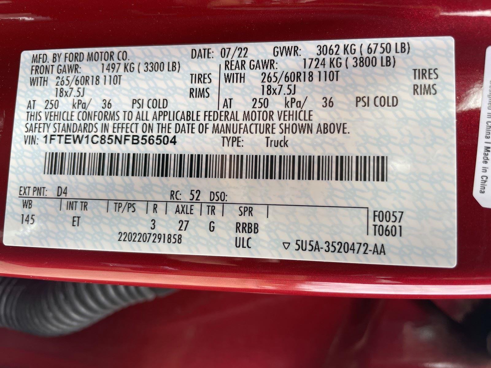 VIN: 1FTEW1C85NFB56504