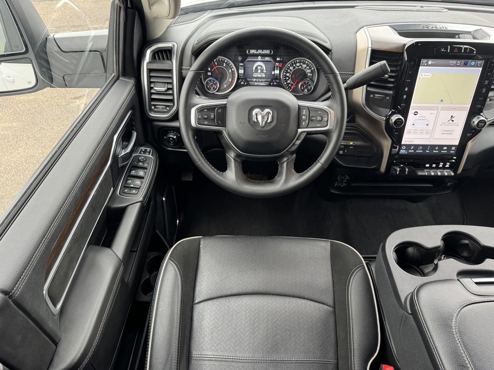 Clean Carfax! One Owner! **WARRANTY REMAINING: 30 MONTHS OR 24,849 MILES**, **6.7L I6 CUMMINS TURBO DIESEL ENGINE** ($9,795 ADD TO MSRP), **SAFETY GROUP** ($1,840 ADD TO MSRP), CUSTOMER PREFERRED PACKAGE 2HH, LARAMIE LEVEL 1 EQUIPMENT GROUP, 6.7L I6, 6-SPEED AUTOMATIC 68RFE TRANSMISSION, 4WD, HEATED STEERING WHEEL, KEYLESS ENTRY, PUSH BUTTON START, REMOTE START, LEATHER, POWER DRIVER'S SEAT, POWER HEATED & COOLED FRONT SEATS, UCONNECT 5, 12 IN SCREEN DISPLAY, ALPINE AUDIO SYSTEM, APPLE CARPLAY, ANDROID AUTO, Bluetooth® FOR HANDS-FREE PHONE, REAR VIEW CAMERA, CRUISE CONTROL, NAVIGATION, LED FOG LAMPS, LED HEADLAMPS, POWER ADJUSTABLE PEDALS WITH MEMORY, TOW HOOKS, LANE-KEEP ASSIST, PARK-ASSIST, BLIND SPOT ALERT, CROSS-TRAFFIC ALERT, THEFT DETERRENT SYSTEM